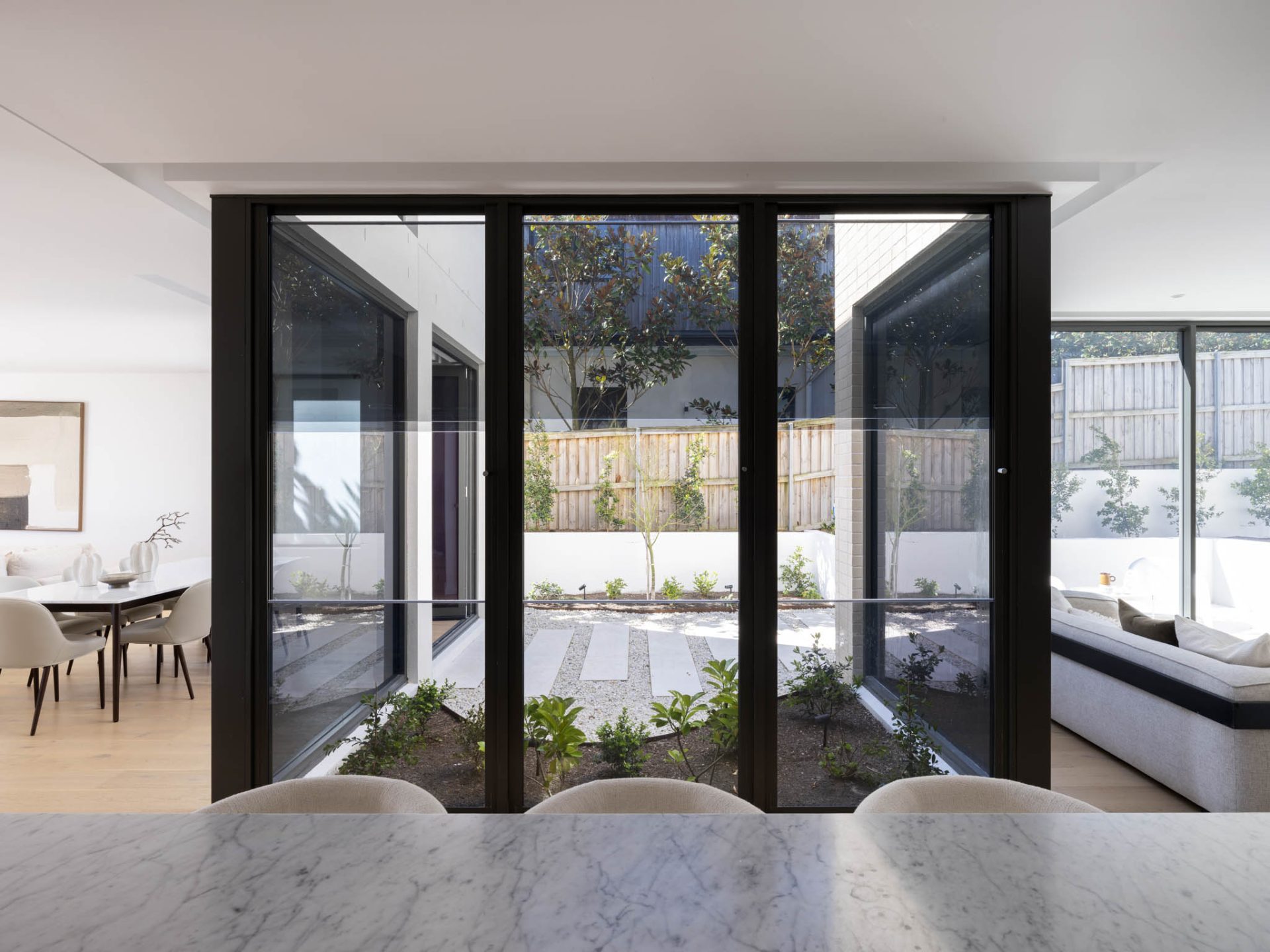 At the centre of the house, the kitchen opens up to a glazed courtyard, bringing plenty of northern sun into the heart of the house and connecting the main living spaces to the outdoor.